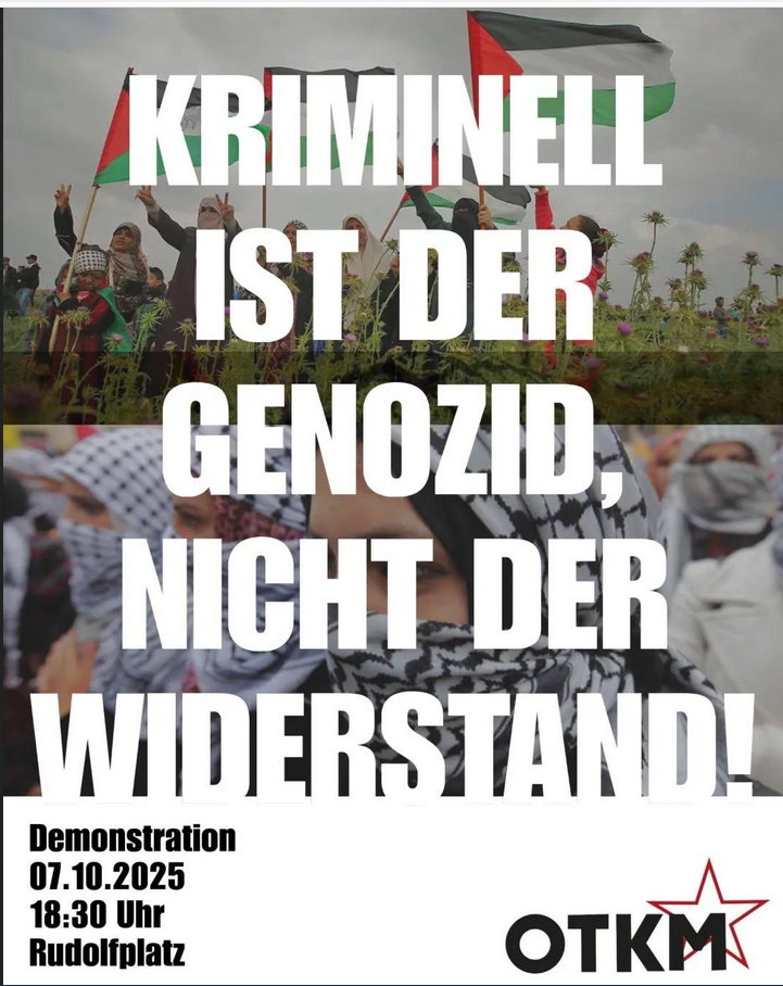 Aufruftext zu unserer Demo am 07.10.2025 unter dem Motto „Kriminell ist der Genozid, nicht der Widerstand“: